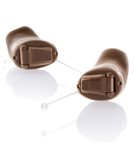 Se fabrican con un fino hilo de plástico para poder extraerlo, lo que facilita mucho su uso a pesar de su tamaño. Pueden incluir conectividad inalámbrica, aunque no admiten micrófonos direccionales. Son más sensibles al sudor ó cerumen por su colocación más profunda en el CAE. Aunque sacrifiquen ciertas prestaciones son los más aceptados por usuarios que están muy preocupados por la estética.