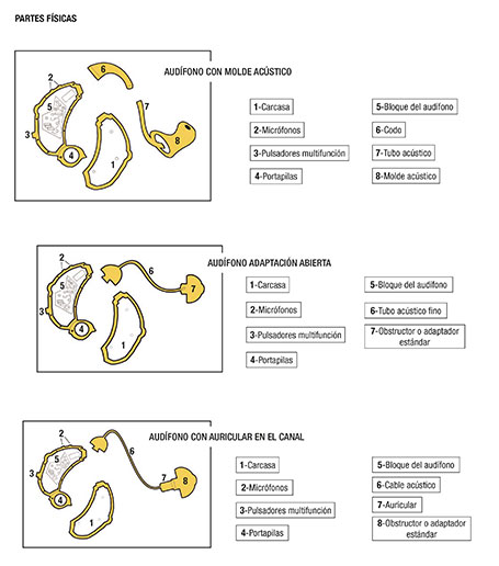 2. Bloque del audífono: Esta parte consta a su vez de varios elementos.