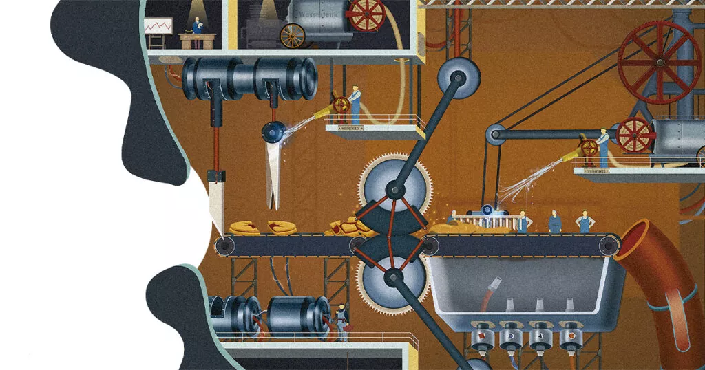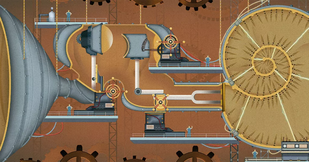 Las imágenes que ilustran este artículo corresponden al videojuego Homo Machina de exploración en 2D, inspirado en las ilustraciones médicas del Dr. Fritz Kahn. Homo Machina permite a los jugadores descubrir el trabajo de un gran artista al mismo tiempo que brinda una visión general completa del funcionamiento interno de nuestro cuerpo. © Darjeeling – Arte France – Feierbband, 2018. Disponible para iOS y Android.