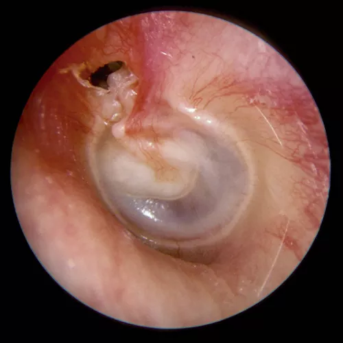 La mayoría de las veces se presenta de forma asintomática, siendo descubierta de forma casual o en el seguimiento tras una otitis media aguda.