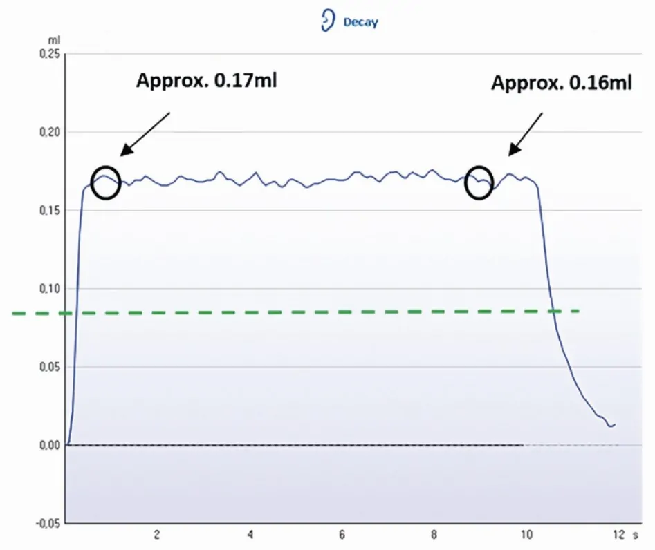 Prueba de fatiga de reflejo negativa. El reflejo no decae tras 10 segundos de presentación del estímulo. © Imagen: interacoustics.com