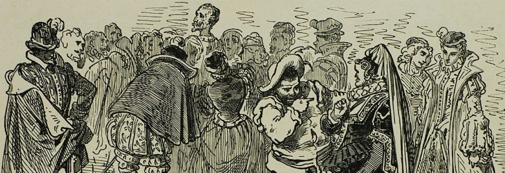 Hortigosa Señor mío de mi alma, movida y incitada de la buena fama de vuesa merced, de su gran caridad y de sus muchas limosnas, me he atrevido de venir a suplicar a vuesa merced me haga tanta merced, caridad y limosna y buena obra de comprarme este guadamecí, porque tengo un hijo preso por unas heridas que dio a un tundidor, y ha mandado la justicia que declare el cirujano, y no tengo con qué pagalle, y corre peligro no le echen otros embargos, que podrían ser muchos, a causa que es muy travieso mi hijo; y querría echarle hoy o mañana, si fuese posible, de la cárcel. La obra es buena, el guadamecí nuevo, y, con todo eso, le daré por lo que vuesa merced quisiere darme por él, que en más está la monta, y como esas cosas he perdido yo en esta vida. Tenga vuesa merced desa punta, señora mía, y descojámosle, porque no vea el señor Cañizares que hay engaño en mis palabras; alce más, señora mía, y mire cómo es bueno de caída, y las pinturas de los cuadros parece que están vivas.