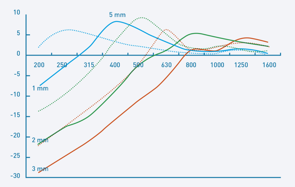 — Si el umbral se encuentra por debajo de 30 dB: por cada 10 dB de incremento en el umbral, se reducirá 0,5 mm el diámetro del venting.