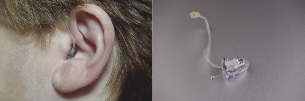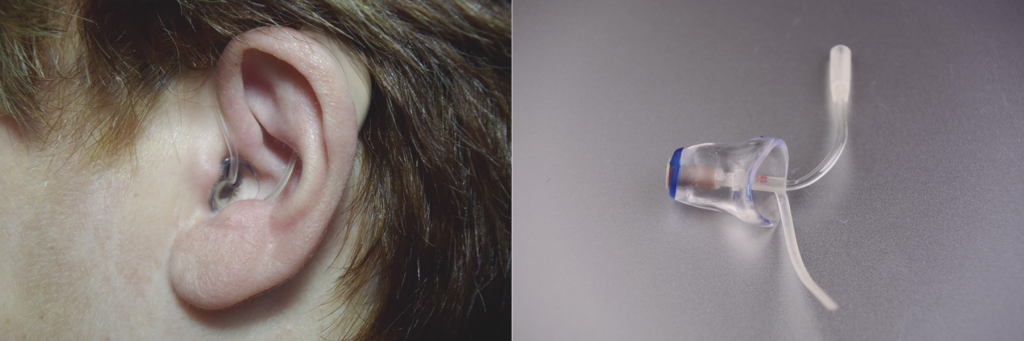 Los componentes del audífono se separaban, alojando una parte detrás del oído e insertando el auricular dentro del canal auditivo. Esto permitía dejar espacio libre para la ventilación del conducto.