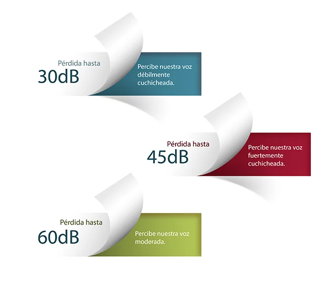 En este test con nuestra propia voz se debe tener en cuenta que la palabra cuchicheada (55dB) es comprendida sin dificultades por un individuo normaoyente a 4 metros.