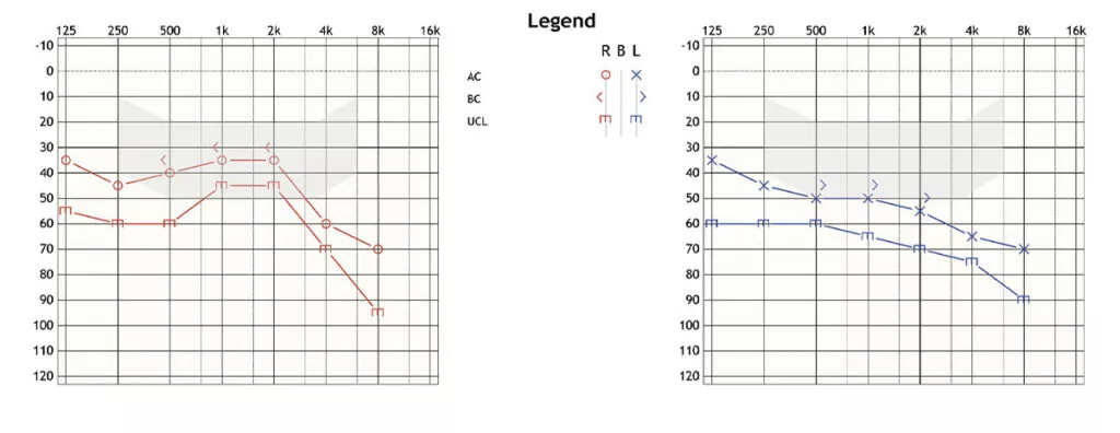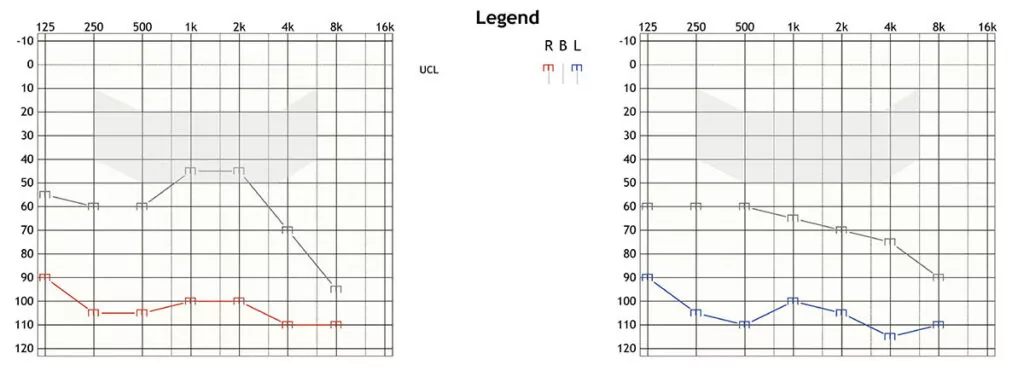 Audiometría tonal y umbrales de molestia (UCL).