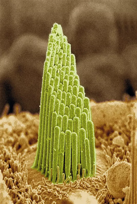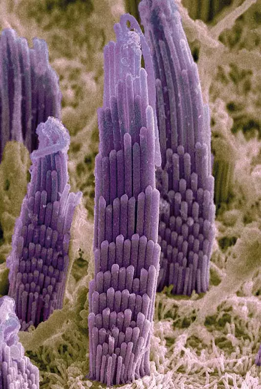 El oído interno contiene alrededor de 30.000 células ciliadas que capturan las ondas sonoras y envían los impulsos eléctricos al nervio auditivo situado en el cerebro.