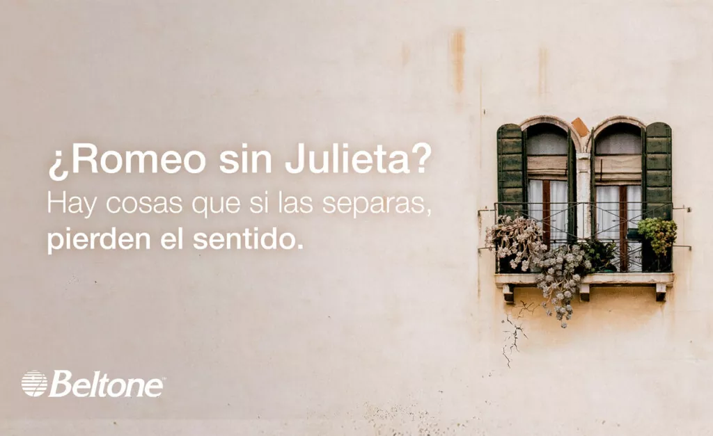 El principal argumento de la campaña es el de poner sobre el tapete lo mucho que tienen que ver ambos sentidos, vista y oído. Así, para recordarlo, se han diseñado diferentes elementos que describen conceptos o personajes que no se pueden concebir sin su alter ego, como Thelma sin Louise, o Romeo sin Julieta, de la misma manera, señala Elisa de Amescua, directora de marketing de Beltone, «que no podemos concebir la vista sin el oído».